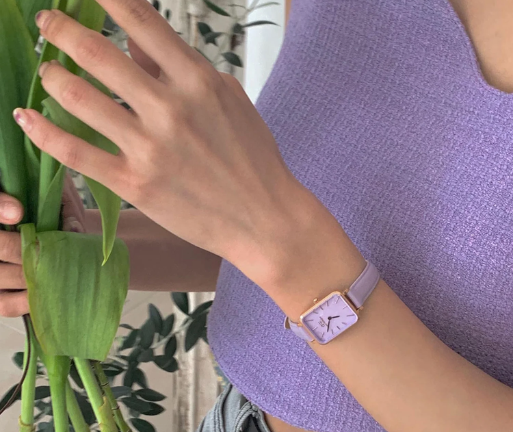 ساعت دنیل ولینگتون مدل QUADRO LAVENDER - رزگلد صفحه صدفی (زنانه)