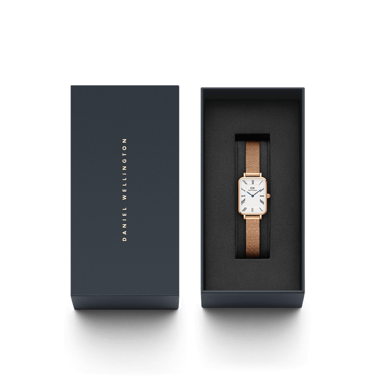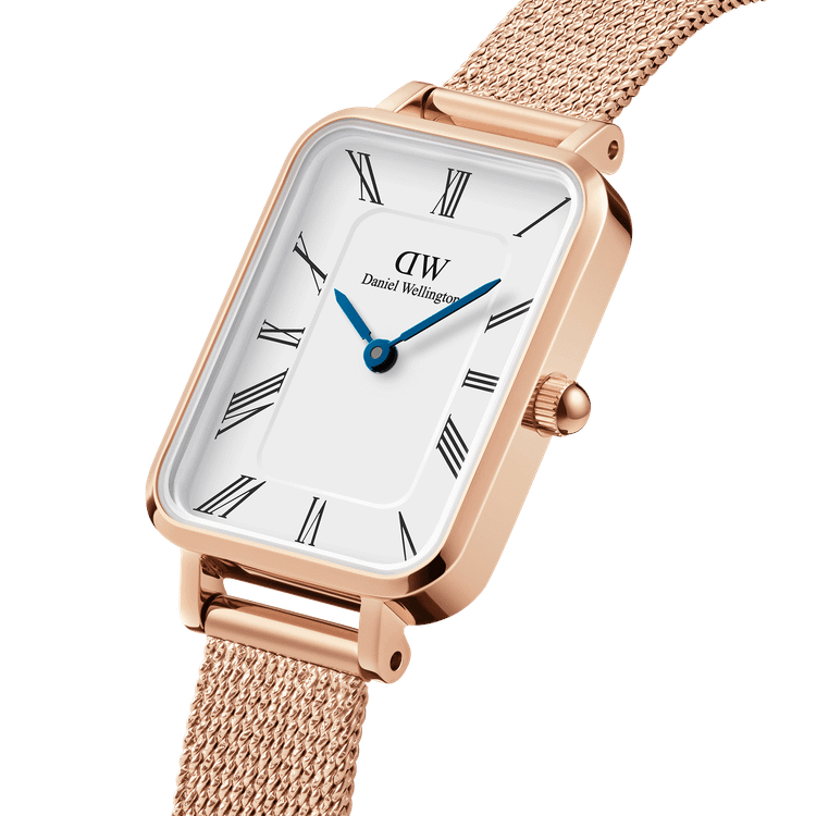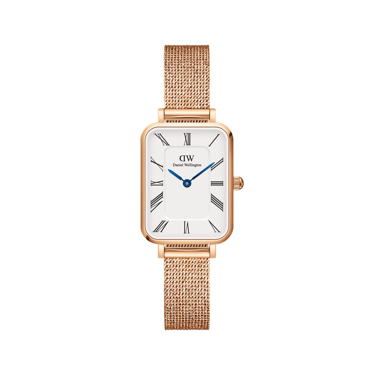 ساعت دنیل ولینگتون مدل QUADRO ROMAN NUMERALS - رزگلد صفحه سفید (زنانه)