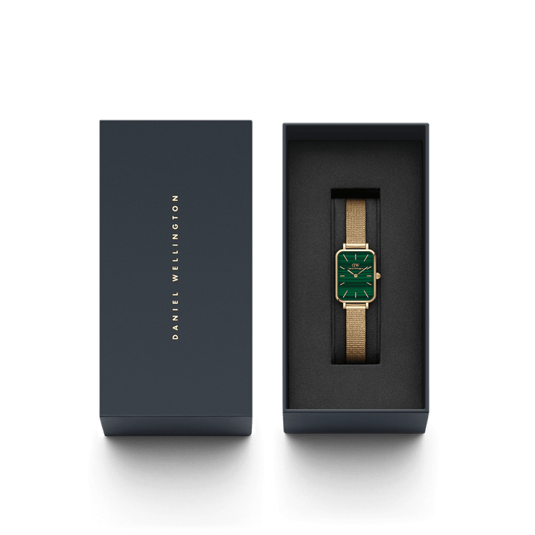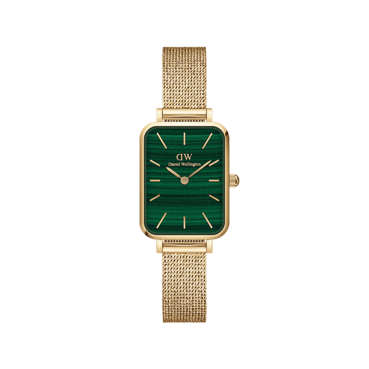 ساعت دنیل ولینگتون مدل QUADRO PRESSED EVERGOLD - طلایی (گلد) صفحه سبز رگه دار (زنانه)