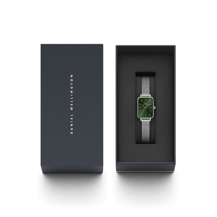 ساعت دنیل ولینگتون مدل QUADRO PRESSED EMERALD - سیلور صفحه سبز (زنانه)