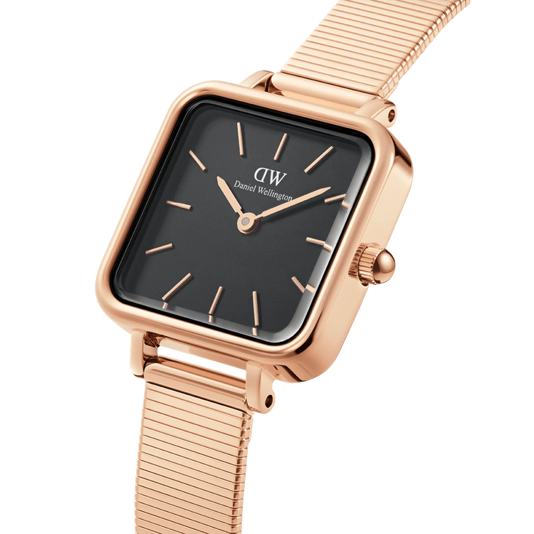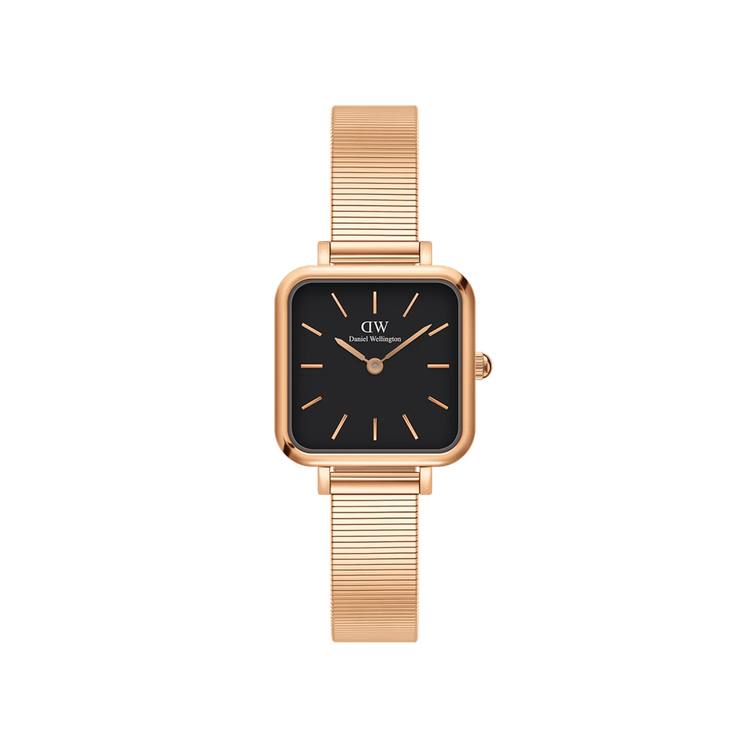 ساعت دنیل ولینگتون مدل Quadro Studio رزگلد صفحه مشکی - زنانه
